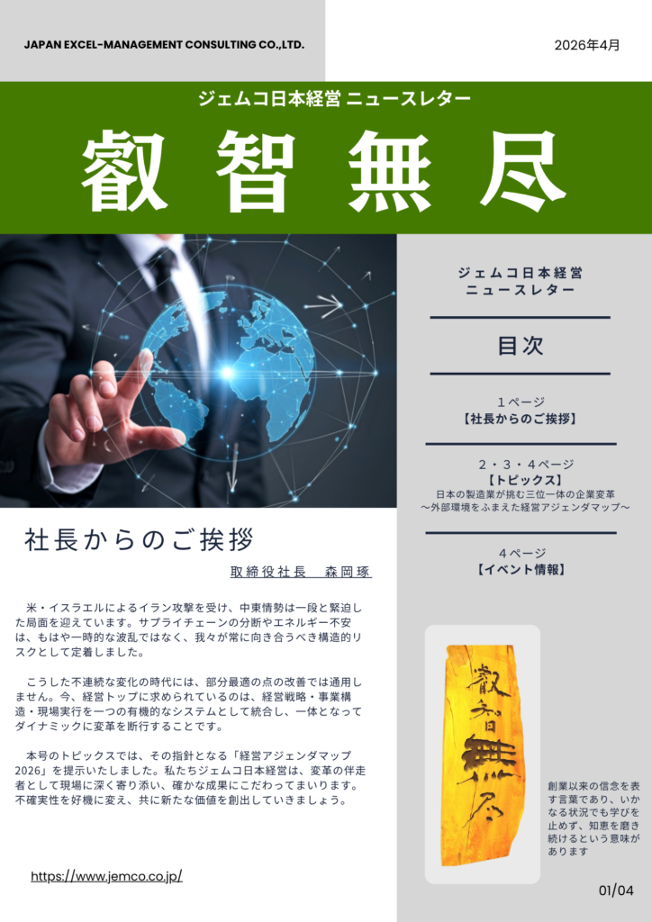 ジェムコ日本経営では、ニュースレター「叡智無尽」2026年4月号を発行いたしました。